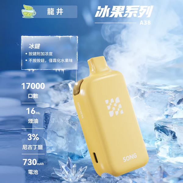 正品崧冰砖SONG A38冰果系列一键冰爽功能17000口一次性电子烟-龙井味