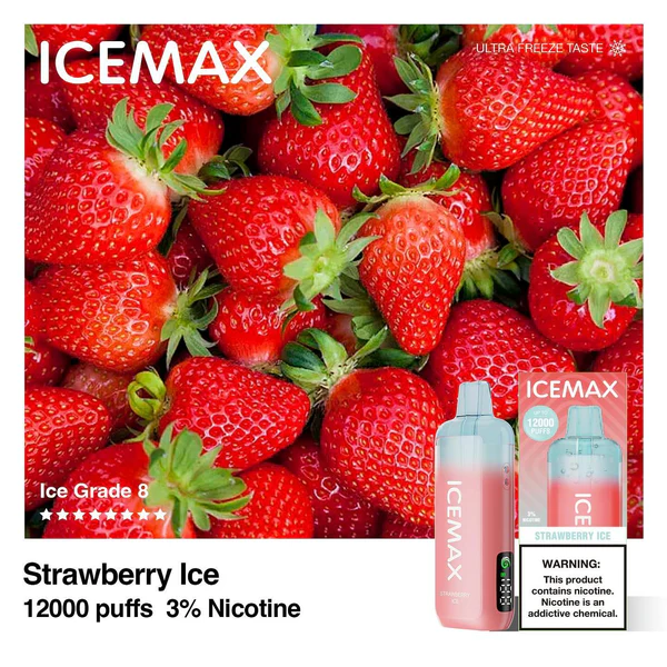 简要描述:正品冰爆Icemax Ultra Freeze Taste 12000口超冰爽液晶显示屏可视化油仓一次性电子烟-草莓味浓郁新鲜的红颜草莓果香,还原熟透草莓的自然